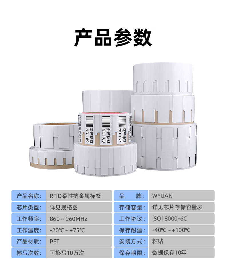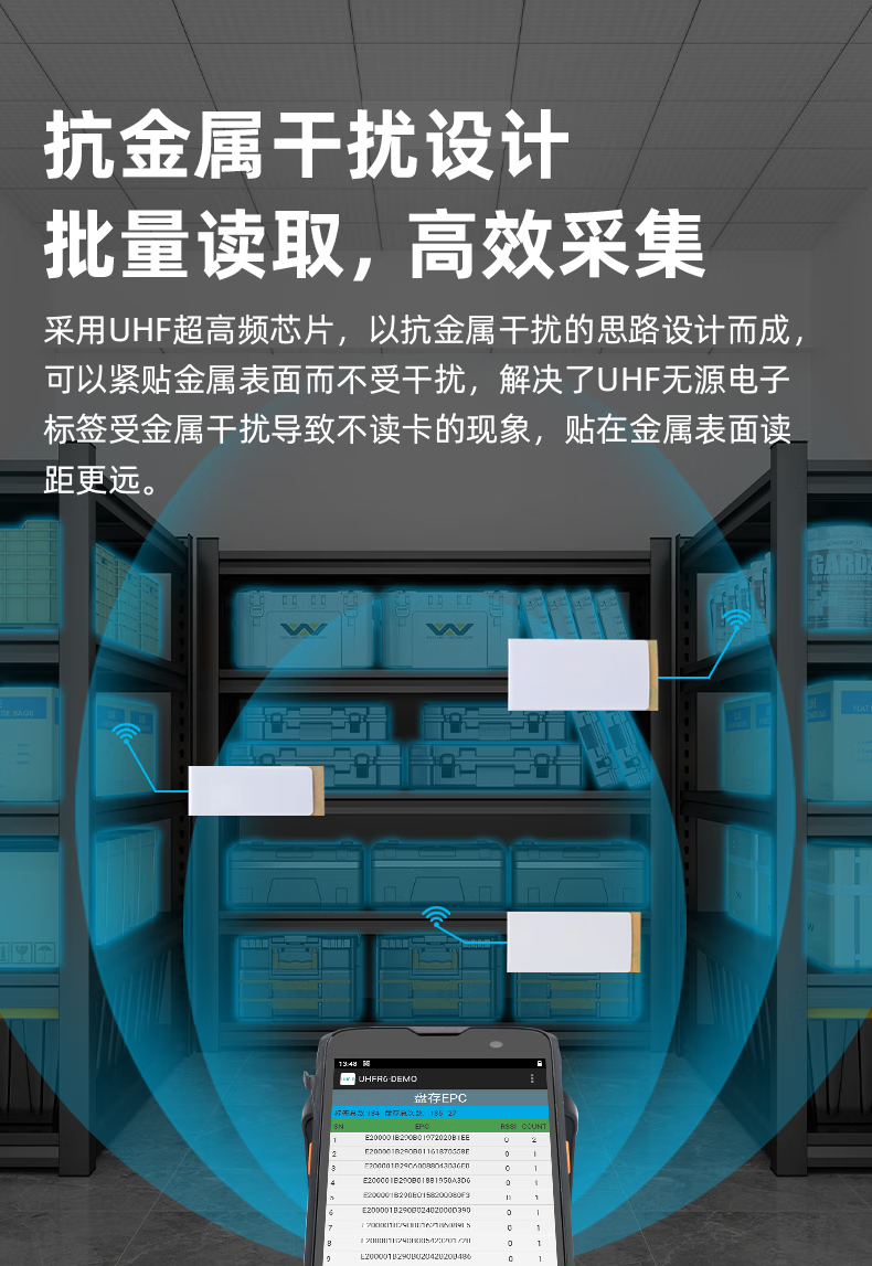 RFID柔性可打印抗金属标签采用柔性设计,在金属或非金属表面均可获得良好的读取性能,可安装于不规则平面或曲面,适配行业主流RFID打印机,支持打印、写码、印刷等个性化定制服务,广泛用于金属容器、固定资产、IT资产管理、仓储管理等领域。